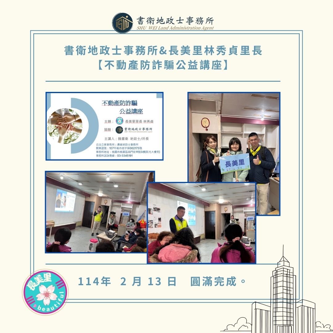 書衛地政士事務所與長美里 林秀貞里長聯合舉辦【不動產防詐騙公益講座】